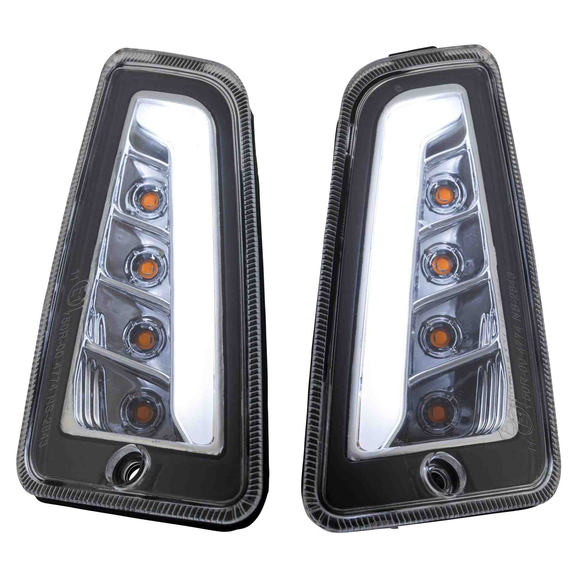 Positionsleuchten strahlen vorne in weißem Licht, die Blinkfunktion bleibt orange. Wird am Fahrzeug der Blinkvorgang ausgeführt so leuchten auf der jeweiligen Seite abwechselnd die Blinker- oder Positionsleuchten auf. Hochwertige Qualität und optimale Passform.