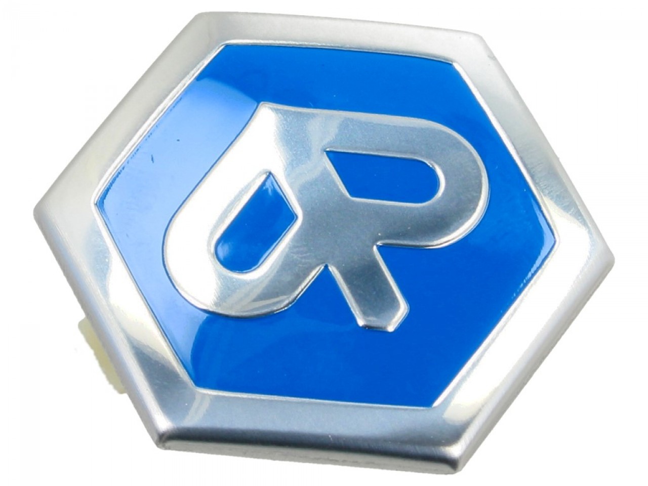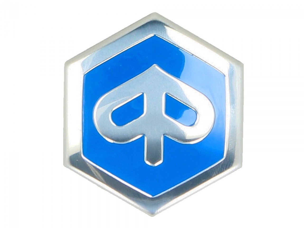 Steckemblem 6-Eck 42x48 mm - PIAGGIO - Kaskade für Piaggio Beverly/Carnaby/Liberty/MP3/X7/X8/X10/X EVO, Felge für Piaggio MP3 Yourban LT/ERL - blau